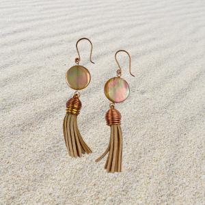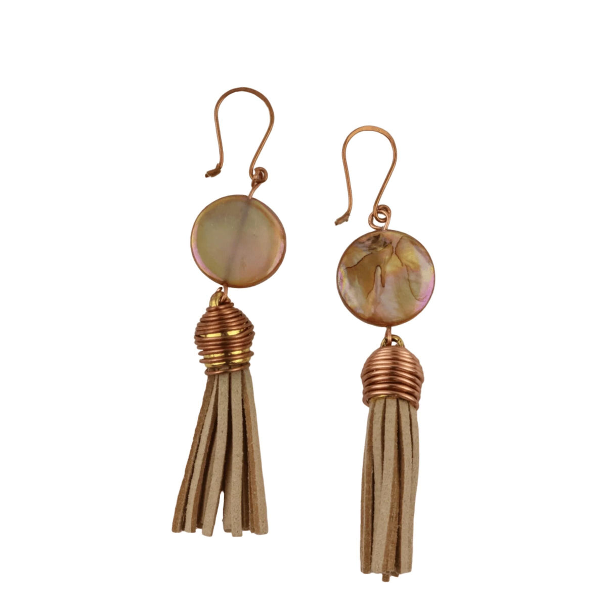Tibetan style earrings with copper coloured glass crystal bicone beads