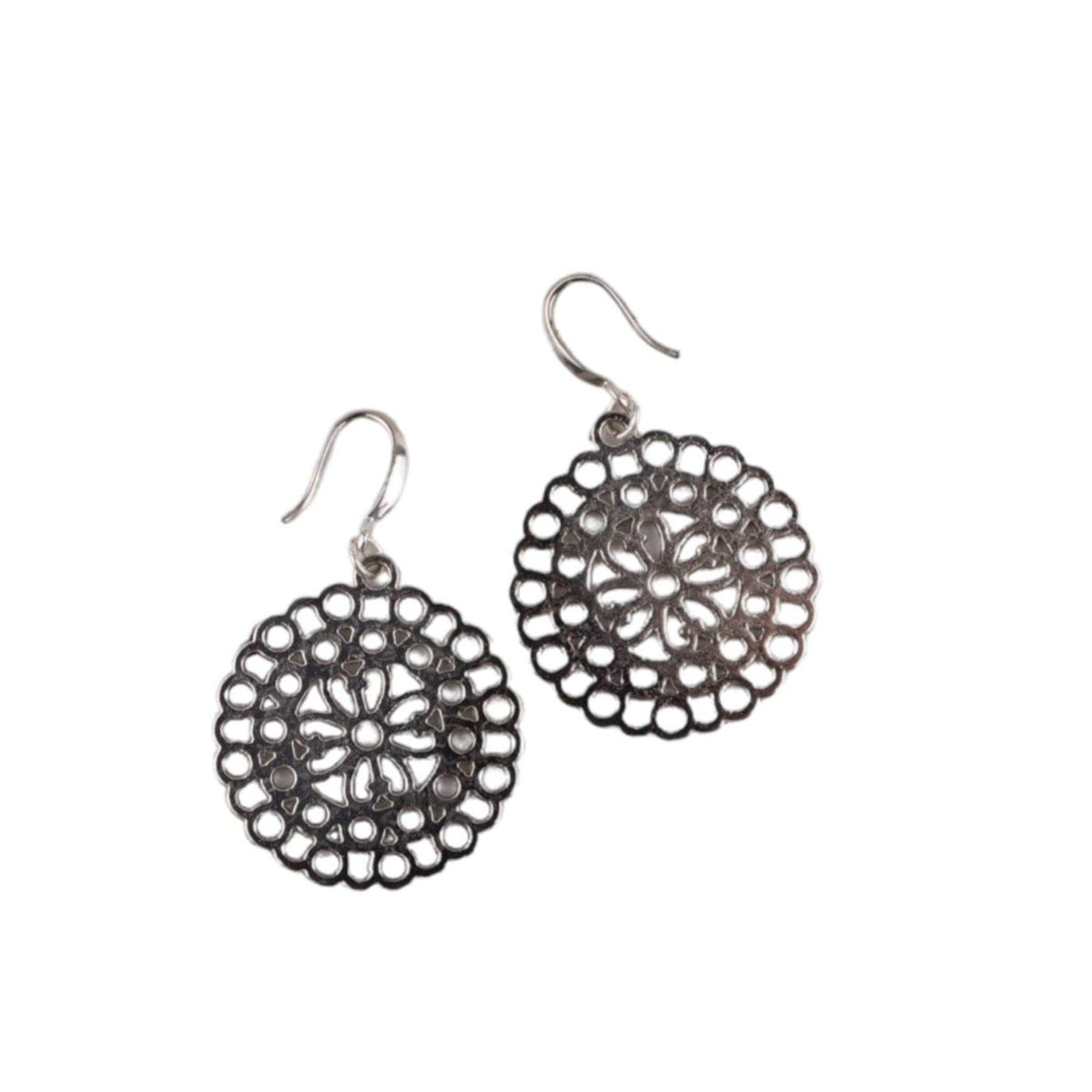 Mandala Silver Drop Earrings: Intricate Boho Elegance