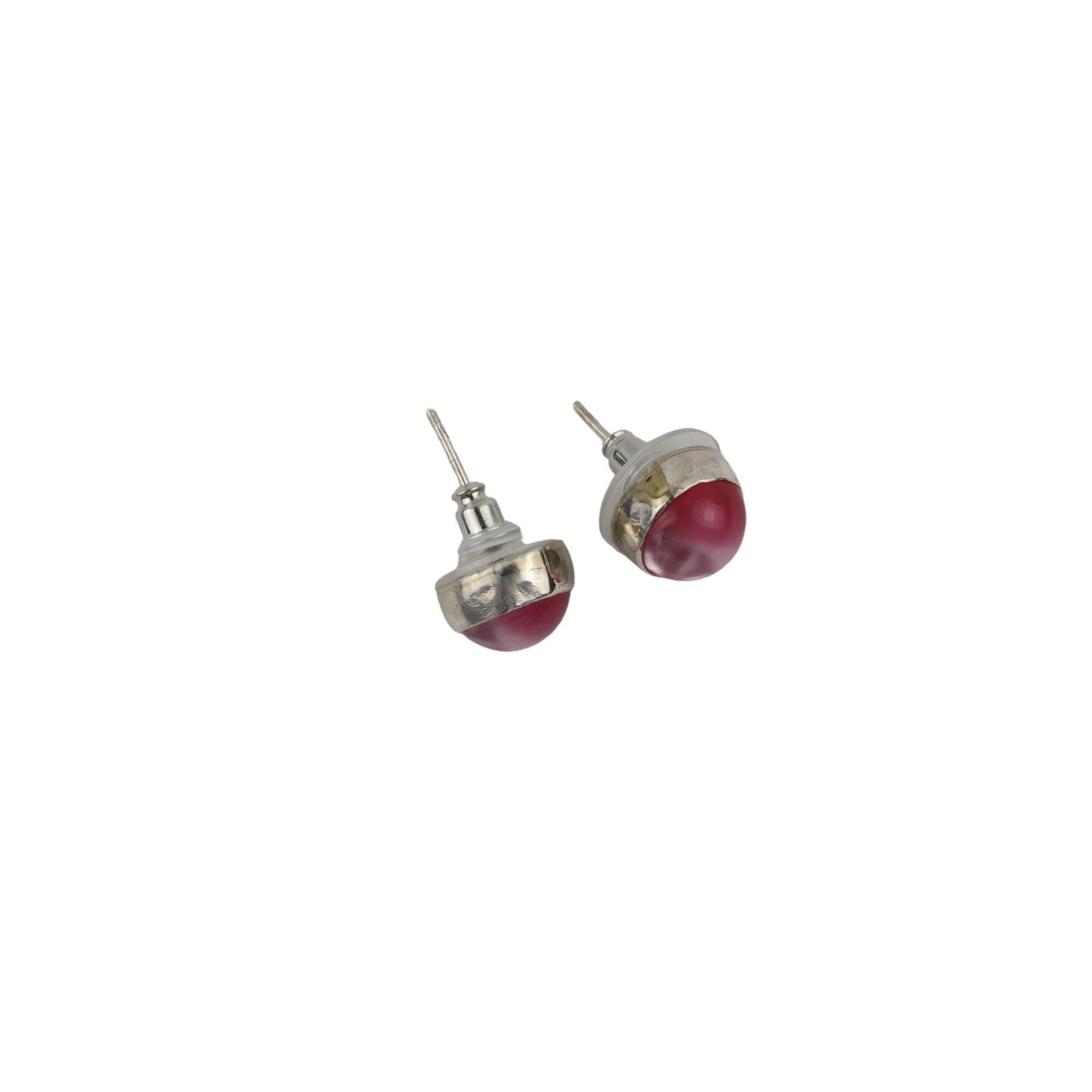 Dark pink resin pearl stud earring