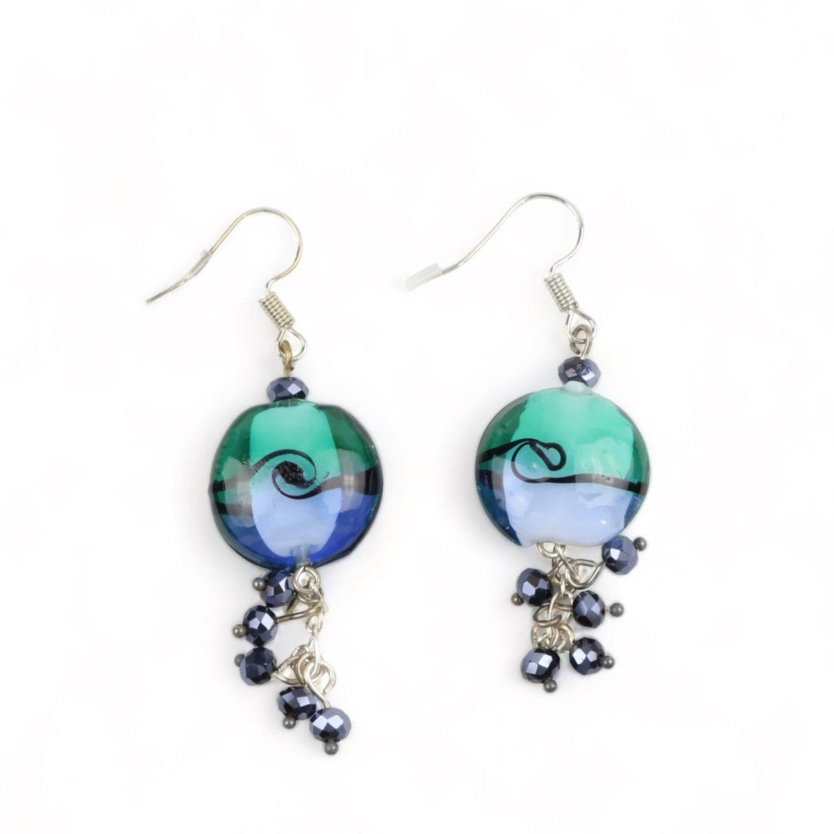 Blue Bead Drop Earrings with Sterling Silver Hooks, Copper,Czech | Llandere Jewelry