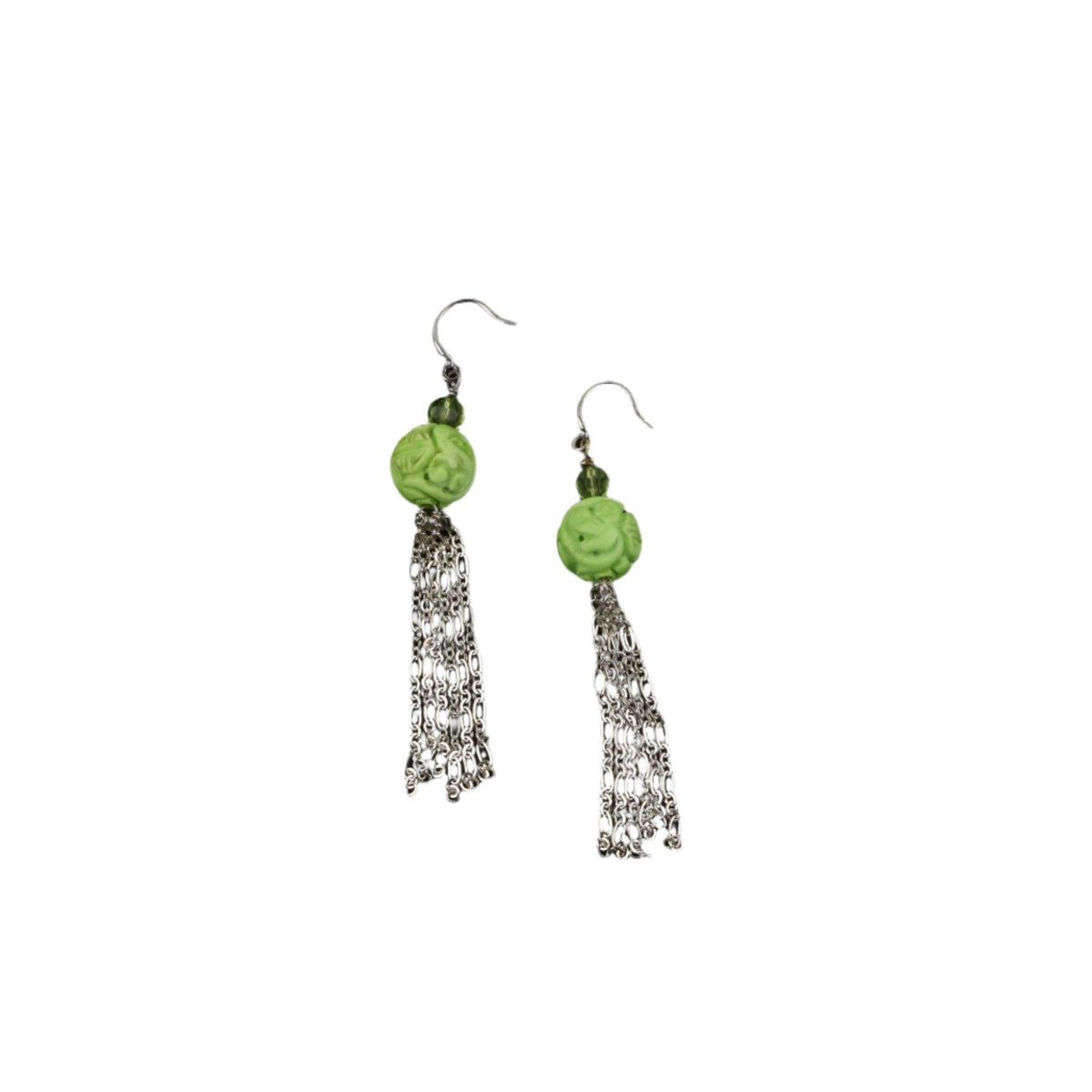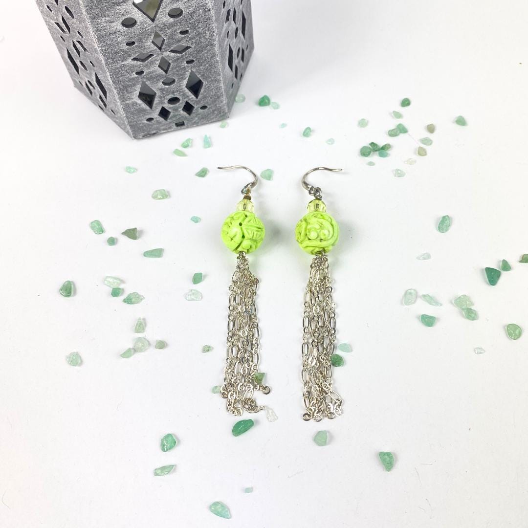 Tassel Earrings Green Howlite - Asian Inspired