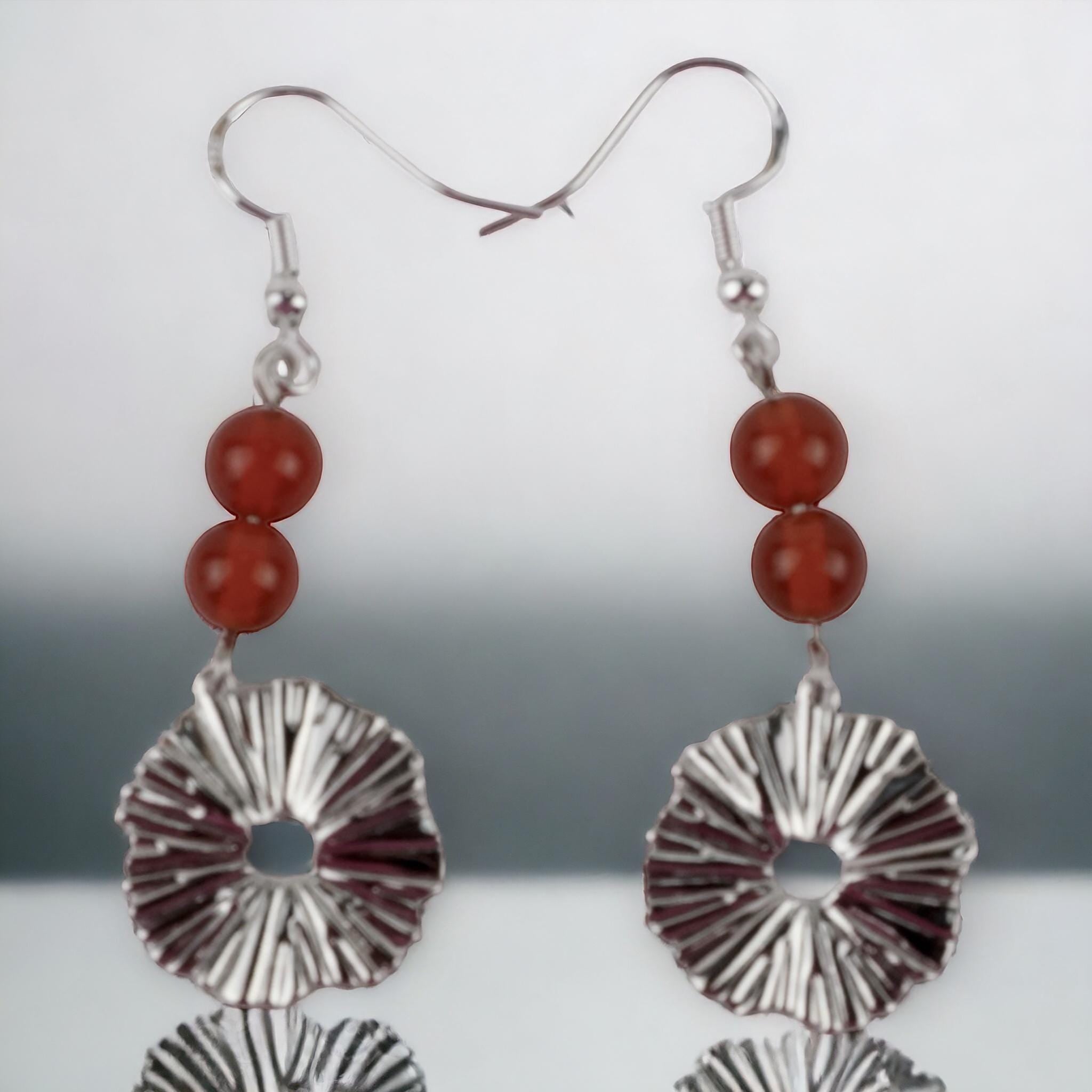 Starburst Earrings: Antique Silver with Carnelian Beads