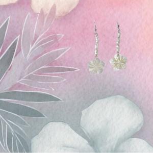 Plumeria Earrings Handmade Mother of Pearl Sterling Silver Floral Drops