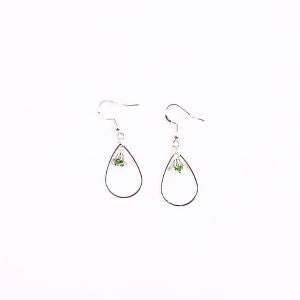 Lily of the Valley Earrings flower: Silver Drop with Green Crystal