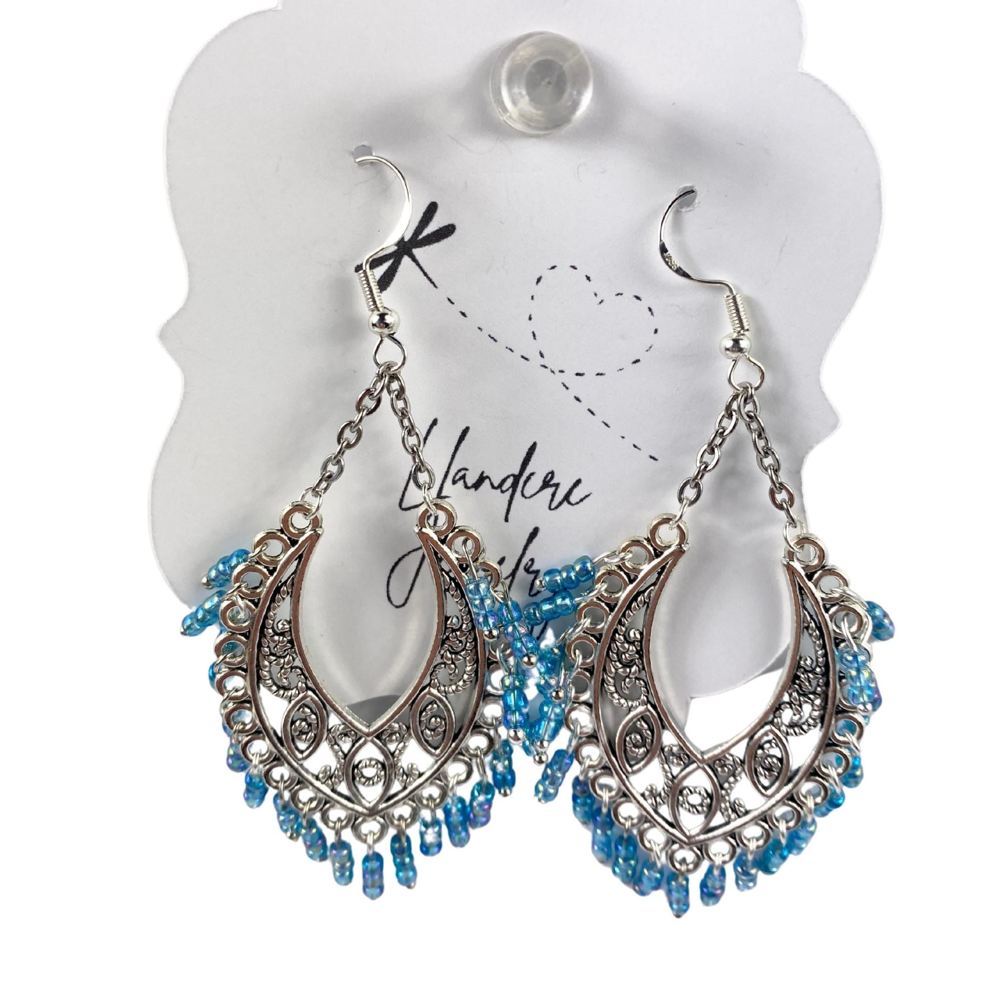Blue Bead Chandelier Earrings Handmade Llandere Jewelry