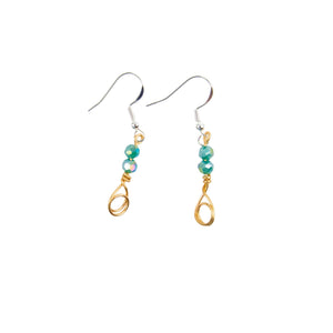 Teal Drop Earrings: Sterling Silver Hooks, Copper Accents