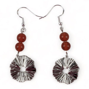 Starburst Earrings: Antique Silver with Carnelian Beads