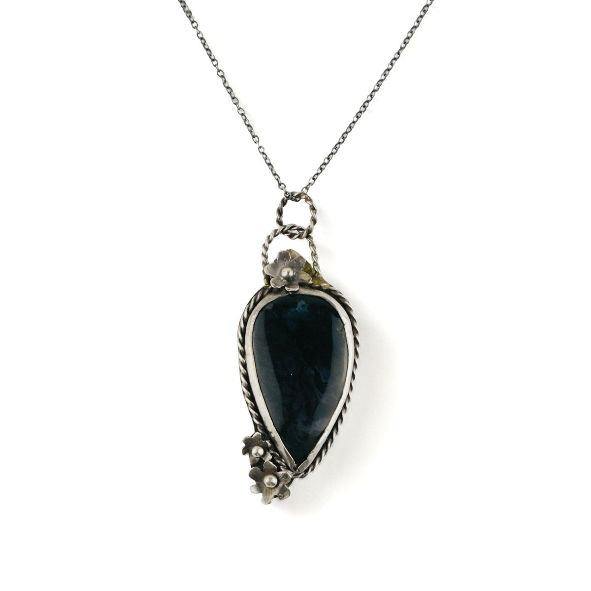 Moss Agate Patina Sterling Silver Pendant Necklace