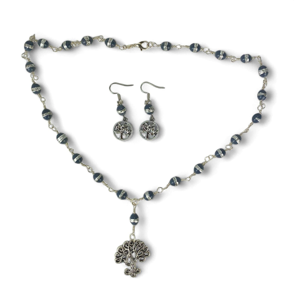 Tree of Life Pendant Necklace & Earrings Set with Coventry Blue Beads