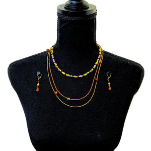 Enhance your style with our stunning Southwestern beaded necklace and earring set, inspired by the captivating colors of the desert. This exquisite triple-stranded ensemble is meticulously handcrafted to embody the rich, warm hues of the sunlit dunes. Each bead is selected for its unique beauty, creating a harmonious blend of earthy tones. This set is perfect for adding a touch of elegance and cultural flair to any outfit. Immerse yourself in the spirit of the Southwest with this beautiful jewelry set that promises to be a conversation starter.