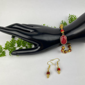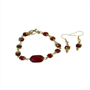 Red Bracelet and Earring Set Red Dyed Dolomite Marble Link Set