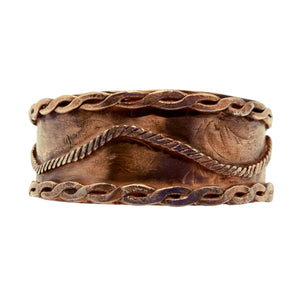 Elevate your ensemble with our handmade copper cuff bracelet, featuring an elegant braided trim. Perfect for adding a sophisticated touch to your accessory collection.