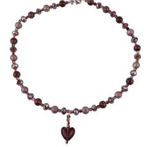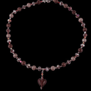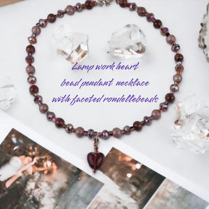Indulge in the beauty of this Heart pendant necklace featuring a stunning lampwork heart bead and sparkling faceted rondelle beads. Measuring 18 inches in length, it exudes a delicate yet alluring charm with its lovely blend of blush pink and brown hues. Get ready to fall in love with this exquisite piece!