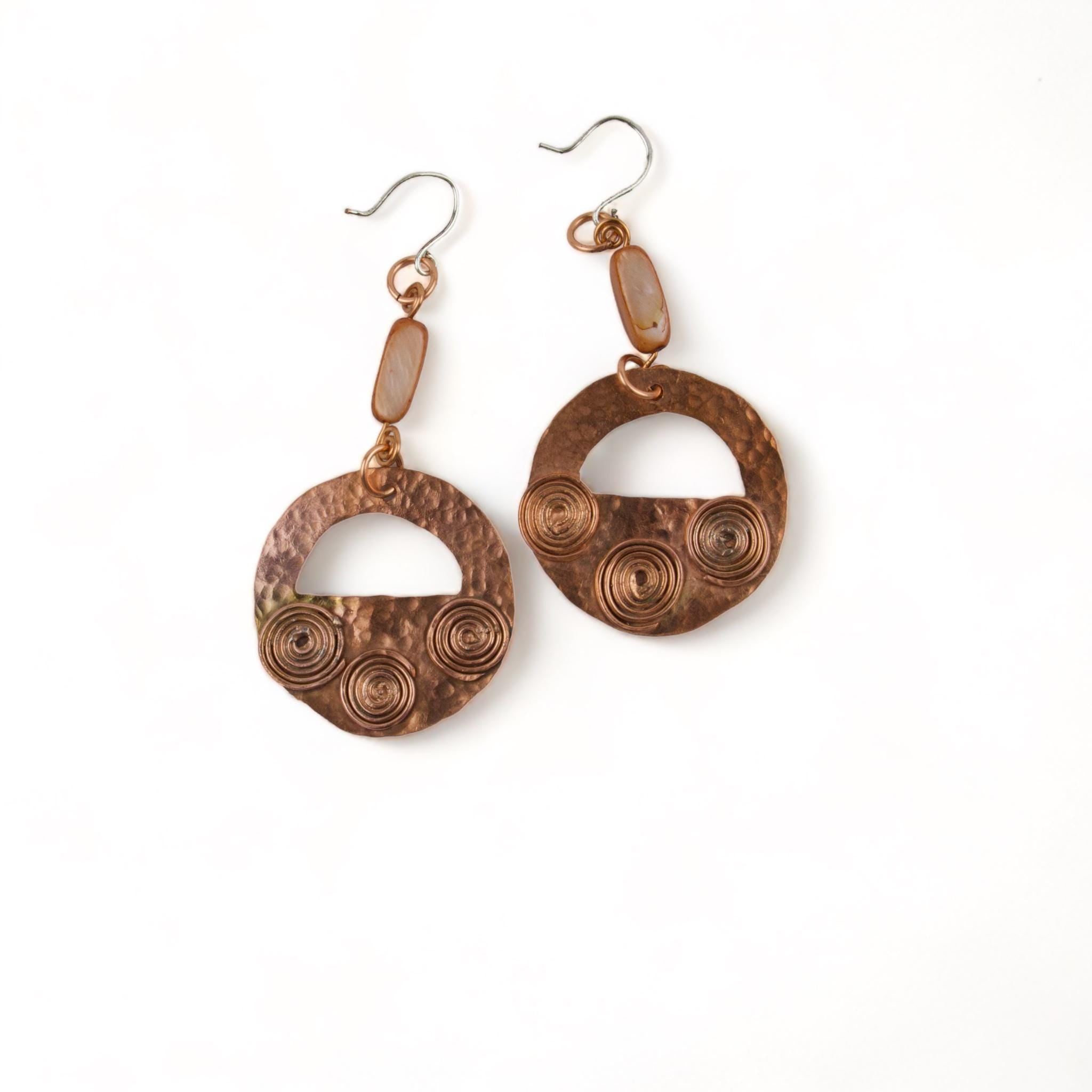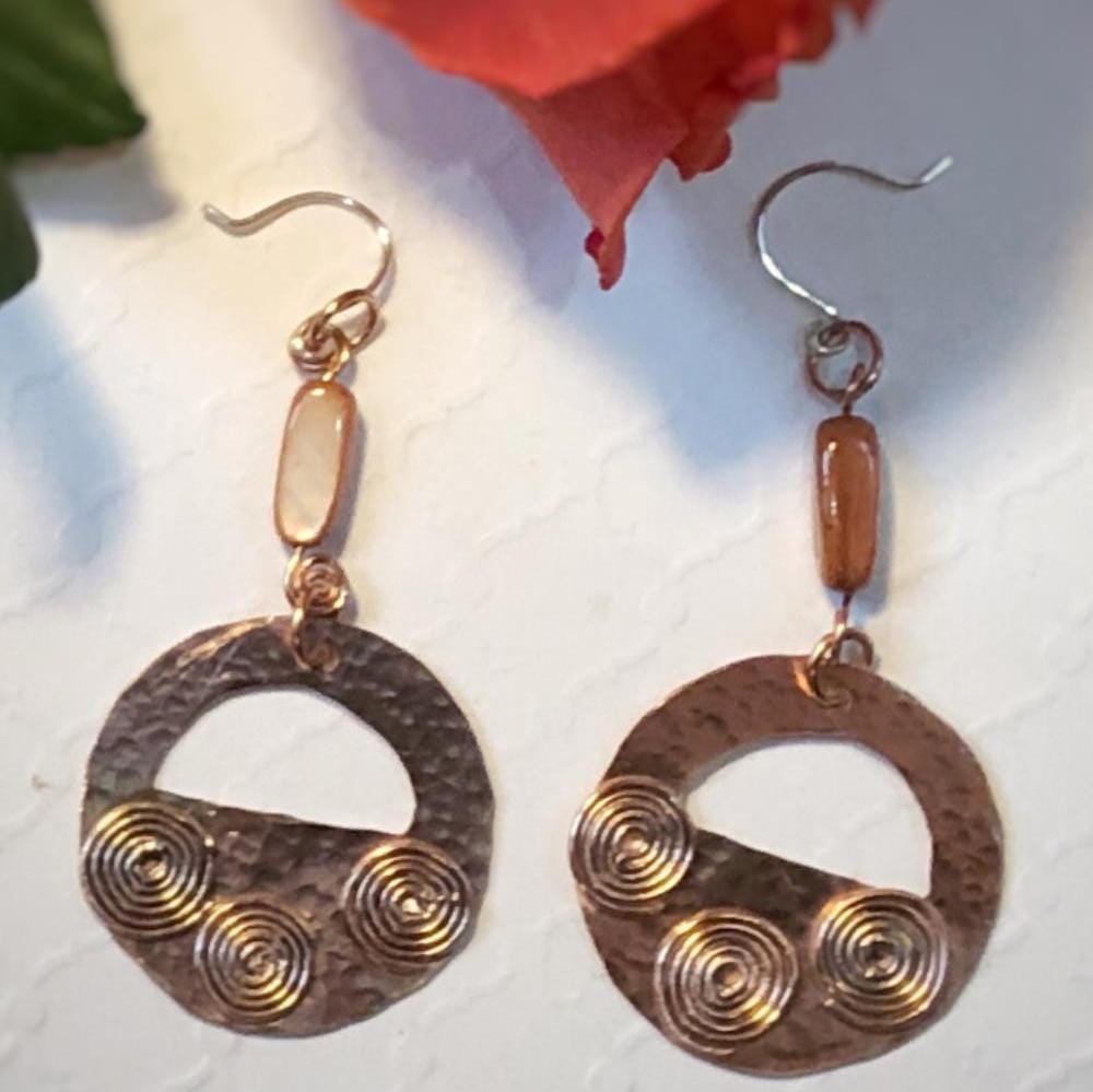 Hammered Copper Drop Earrings – Rustic Elegance
