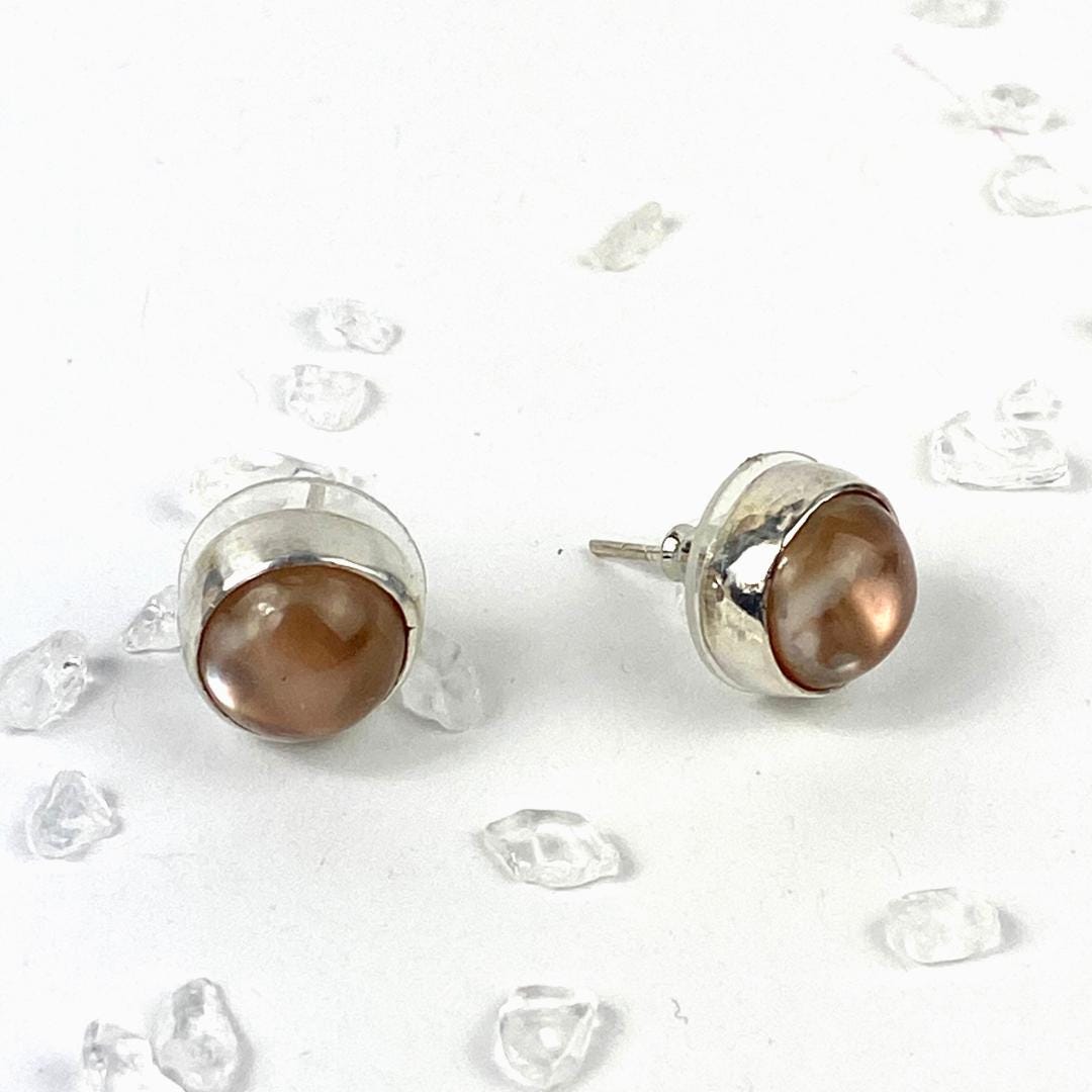 Honey colour pearl sterling silver earrings