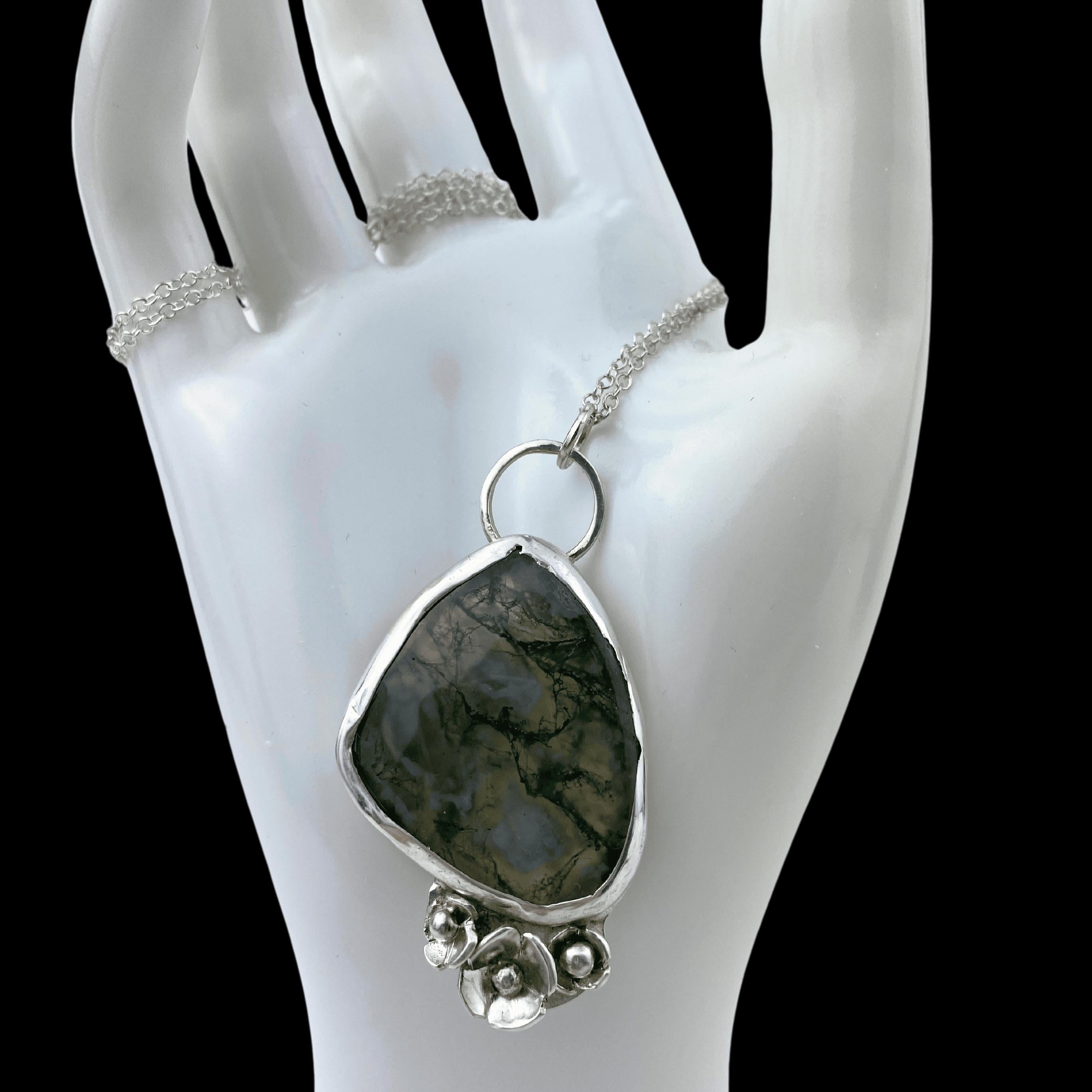Moss Agate Patina Sterling Silver Pendant Necklace
