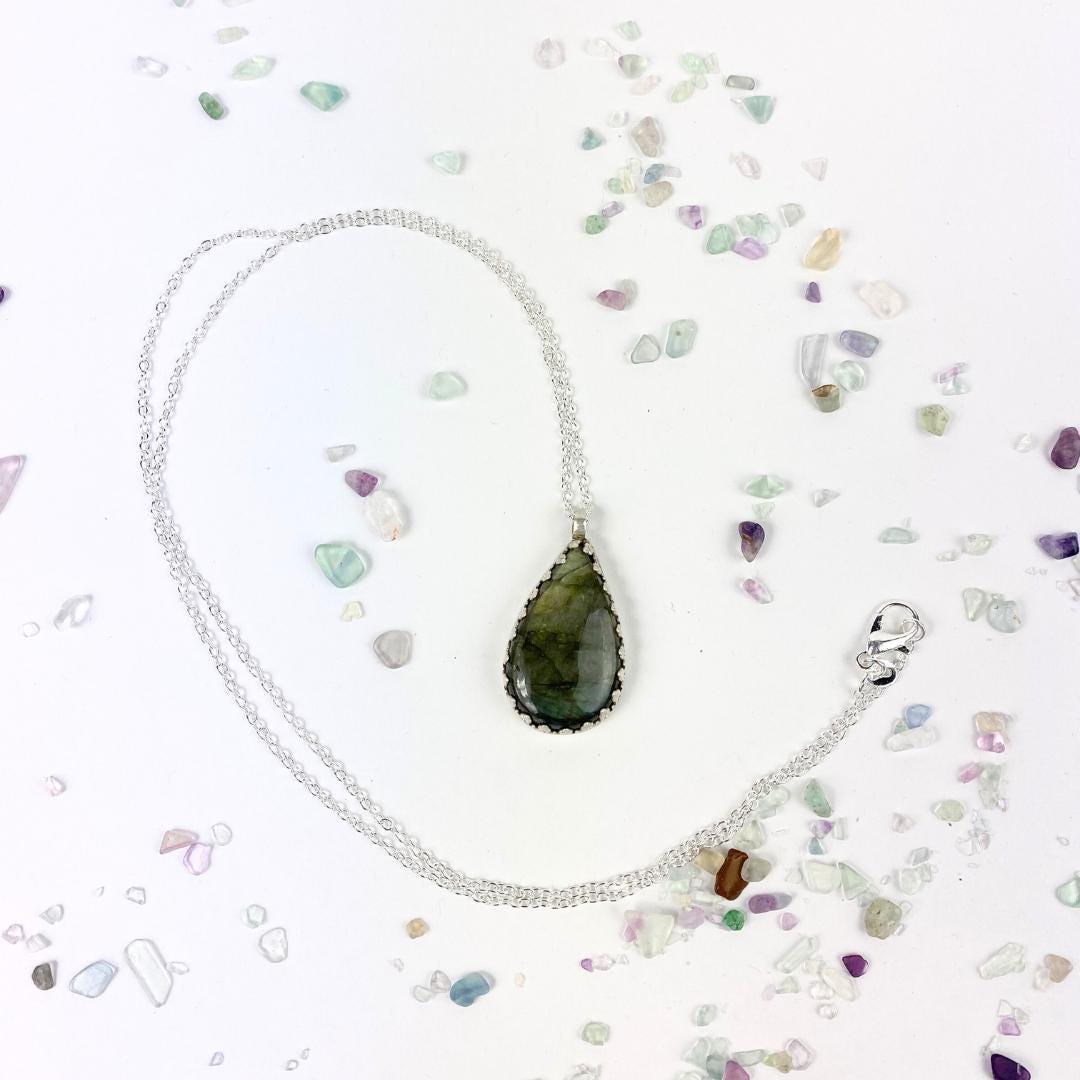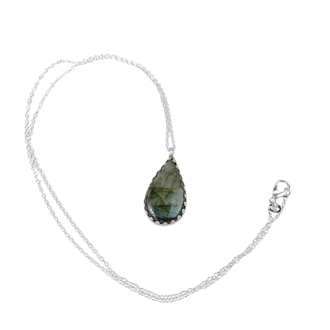Labradorite Teardrop Pendant Necklace – Elegance in Every Glow