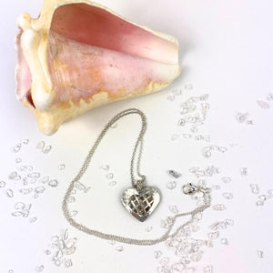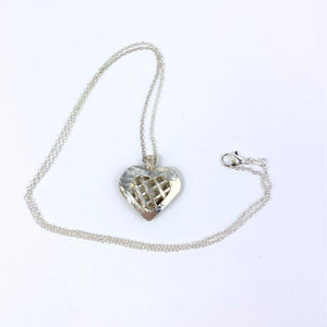 This captivating handmade sterling silver puff heart pendant is a delightful addition to any jewelry collection, radiating charm and timeless elegance. Expertly crafted by skilled artisans, this exquisite piece showcases the beauty of sterling silver in a design that is both classic and contemporary. The puff heart shape adds a touch of romance, making it an ideal gift for loved ones or a special treat for yourself. Wear it to add a subtle sparkle to everyday attire or to complement evening wear with a touch of sophistication. Embrace the allure of fine craftsmanship and make a statement with this stunning puff heart pendant that speaks to the heart. Hang length of the sterling silver chain is 12 inches.