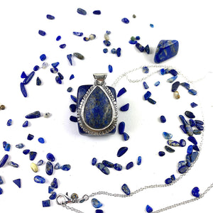 Discover the enchanting beauty of our Sodalite pendant necklace, crafted with care from high-quality sterling silver. Featuring a stunning sodalite gemstone, this delicate piece embodies tranquility and enhances intuition, making it perfect for daily wear. Measuring approximately 18 inches in length, it sits gracefully on the neckline, adding a touch of elegance to any outfit, whether casual or formal.