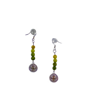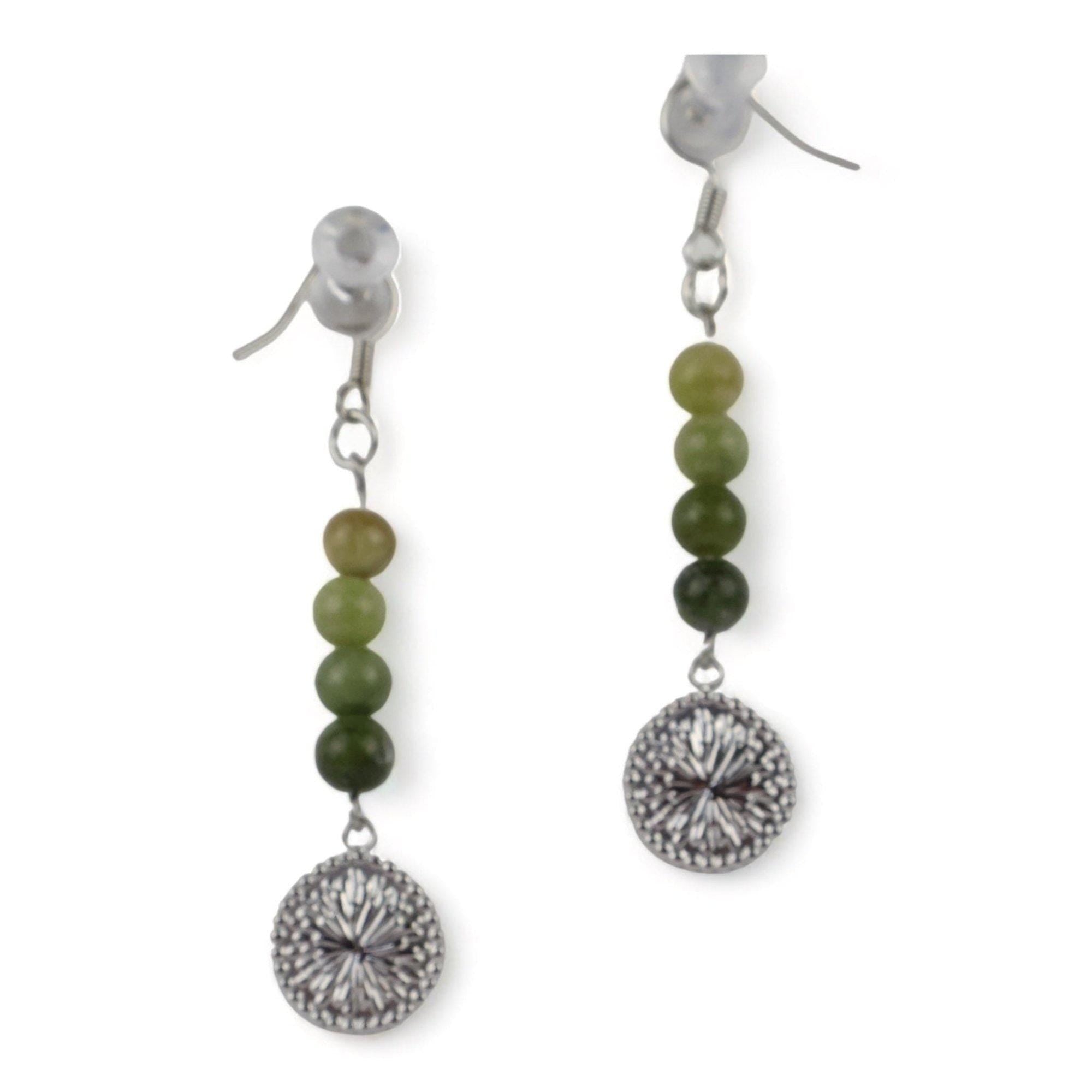 Evoke feelings of hope, healing, resilience, and well-being with these Silver dandelion and green jasper beaded earrings.