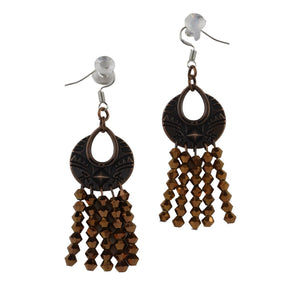 Experience the beauty and elegance of our Tibetan style chandelier earrings adorned with copper coloured glass crystal bicone beads. Let these stunning pieces add a touch of sophistication and allure to your wardrobe. stainless steel hooks.